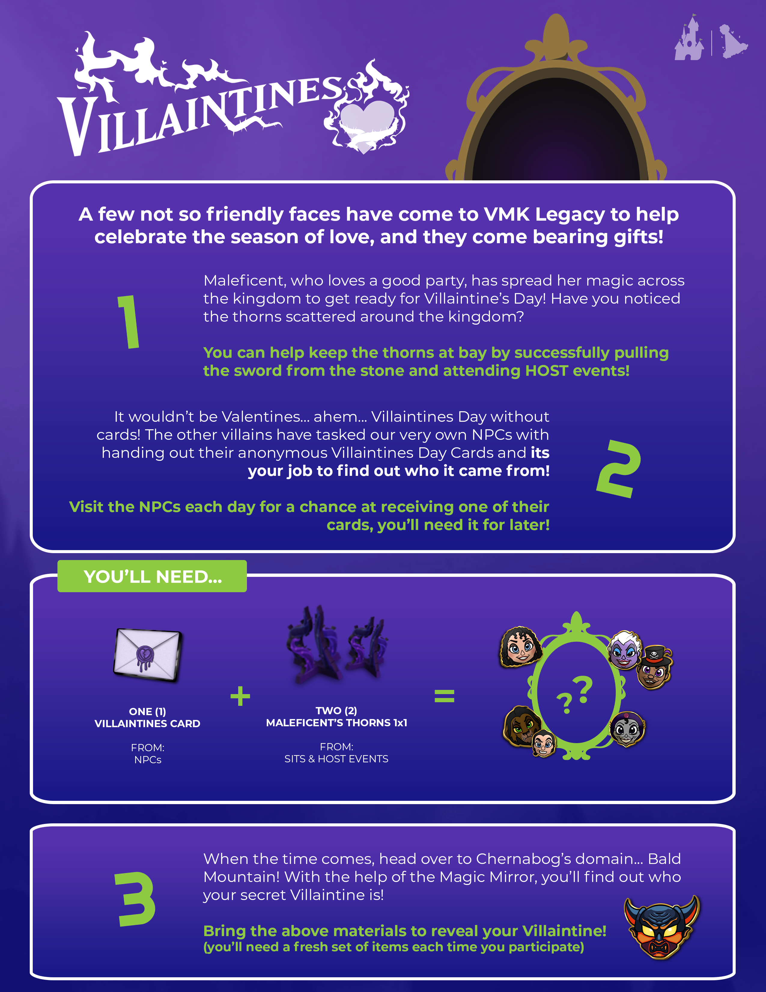 As Villaintines comes to an end... Maleficent wants to leave her mark on VMKL forever... thankfully, I think the surprise that she is bringing fits right in. Also, any tricks to spinning a different villain during Date Night on Bald Mountain?? I kept getting Gaston and he keeps telling me he likes my coat...