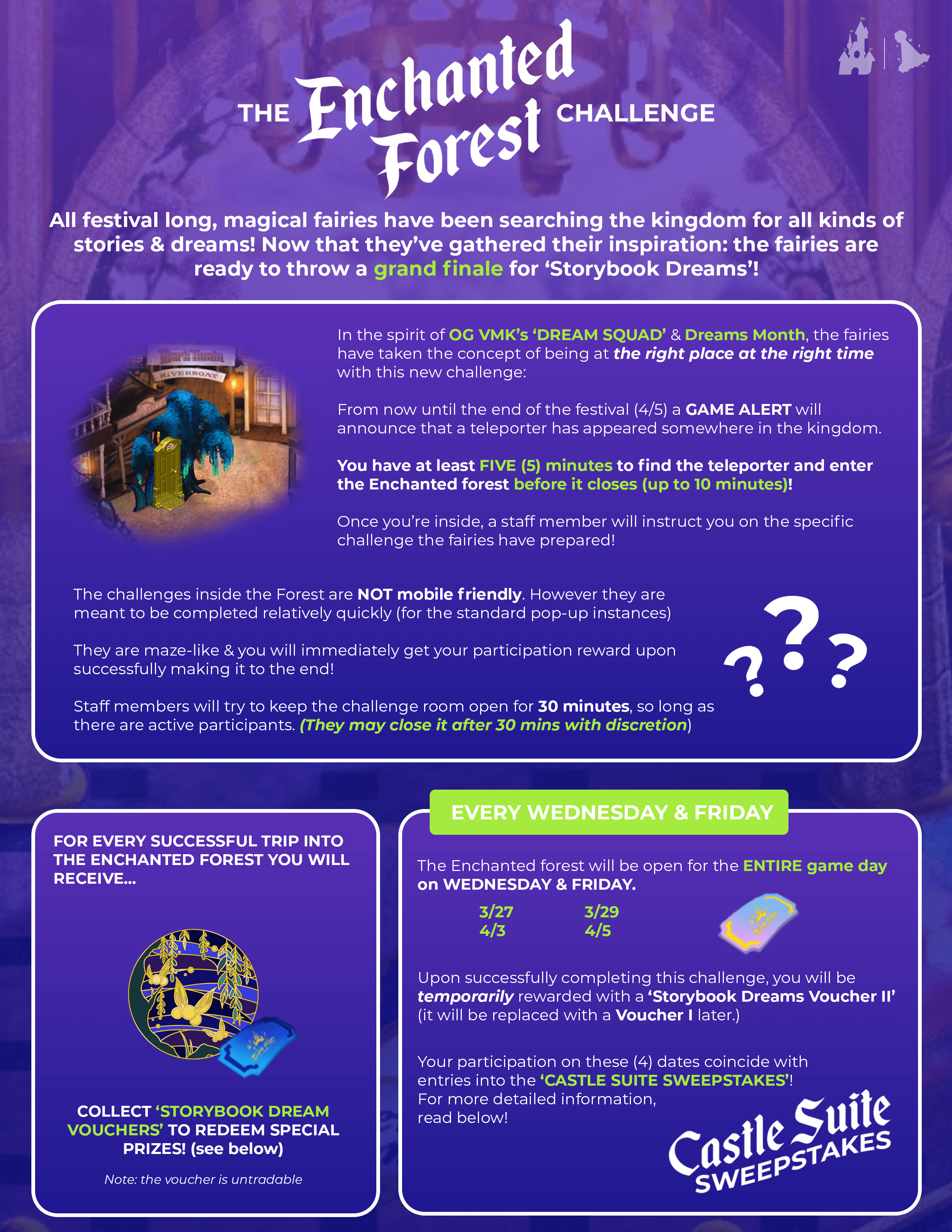 ADDITIONAL NOTES FOR 'The Enchanted Forest Challenge' & 'Castle Suite Sweepstakes'