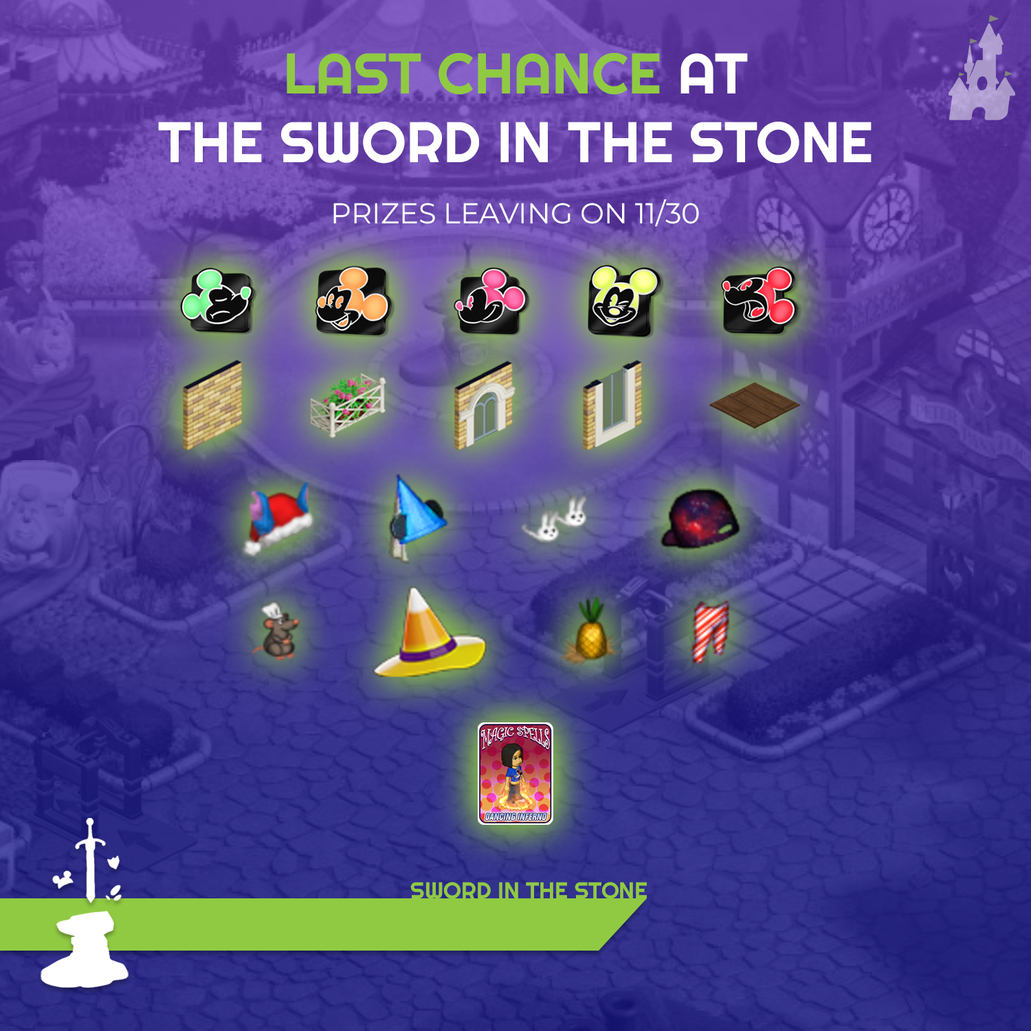 Off season items are back in the Sword in the Stone for the FINAL time in 2024! Expect BRAND NEW items coming in 2025! Check out our Discord for a pinned player-made list or our Knowledge Base for more information!